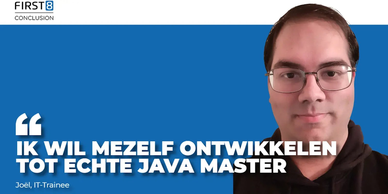 Met ervaring uit bijbanen en actieve deelname aan zijn studievereniging, brengt Joël veel energie en een analytisch denkvermogen mee naar het IT-traineeship. “Ik zie een uitdaging in het vertalen van theoretische concepten naar de praktijk, maar ik heb er alle vertrouwen in dat ik dat tijdens het traineeship onder de knie krijg.” Zijn teamgerichte aanpak en focus op codekwaliteit zullen hem helpen om een verschil te maken in technische vraagstukken. “Ik vind het leuk om in teamverband te denken over en werken aan IT-oplossingen en kan goed omgaan met de werkstijlen van anderen.” Dat Joël meteen op zijn plek zit, blijkt ook als hij alvast kort vooruitblikt: “Ik wil mezelf doorontwikkelen tot een ervaren Java Developer die zijn werk met veel plezier doet. Het liefst bij Conclusion, want de werksfeer en het professionalisme dat ik tot nu toe heb ervaren bij First8 Conclusion, smaakt naar meer.”