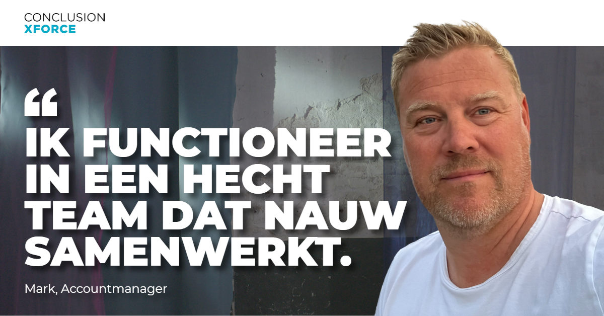 Mark heeft een technische achtergrond en is projectmatig sterk. “Mensen zeggen dat ik vertrouwd overkom en worden rustig van mij”, stipt hij kwaliteiten van zichzelf aan. “Die eigenschappen combineer ik in mijn rol als Account Manager. Ik probeer de klant op een normale manier mee te nemen in onze gezamenlijke reis en het vertrouwen in mij en Conclusion Xforce te geven.” Ja, gaat het toch weer over die reis. Die hij nu steeds weer met veel plezier inzet, samen met klanten en collega’s - en die hem ooit naar verre oorden zal brengen. Ooit, dan.